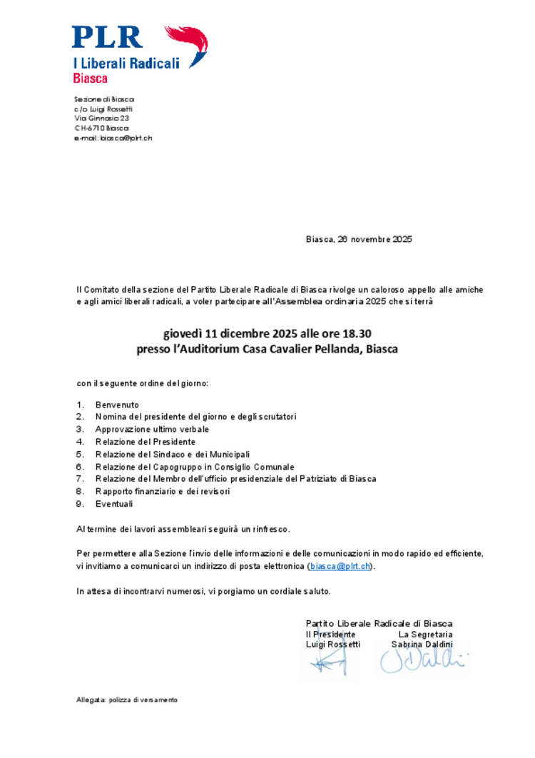 PLR Biasca - Assemblea ordinaria